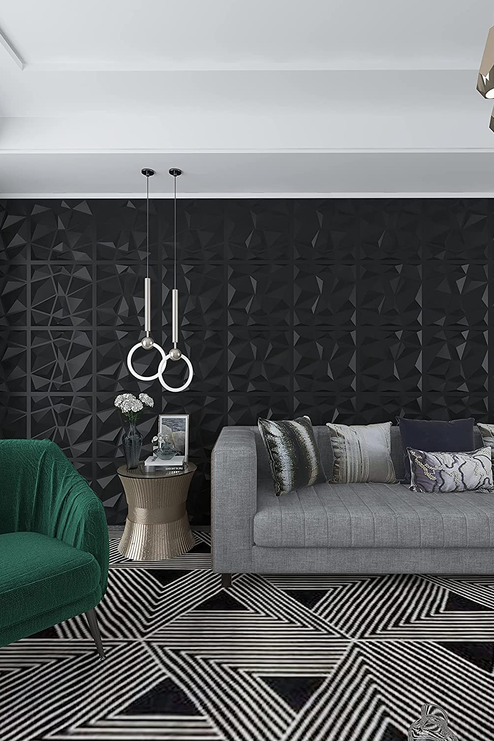 Panel Lamina 4d Pared Pvc Prisma Noir Negro Pack 4 unidades